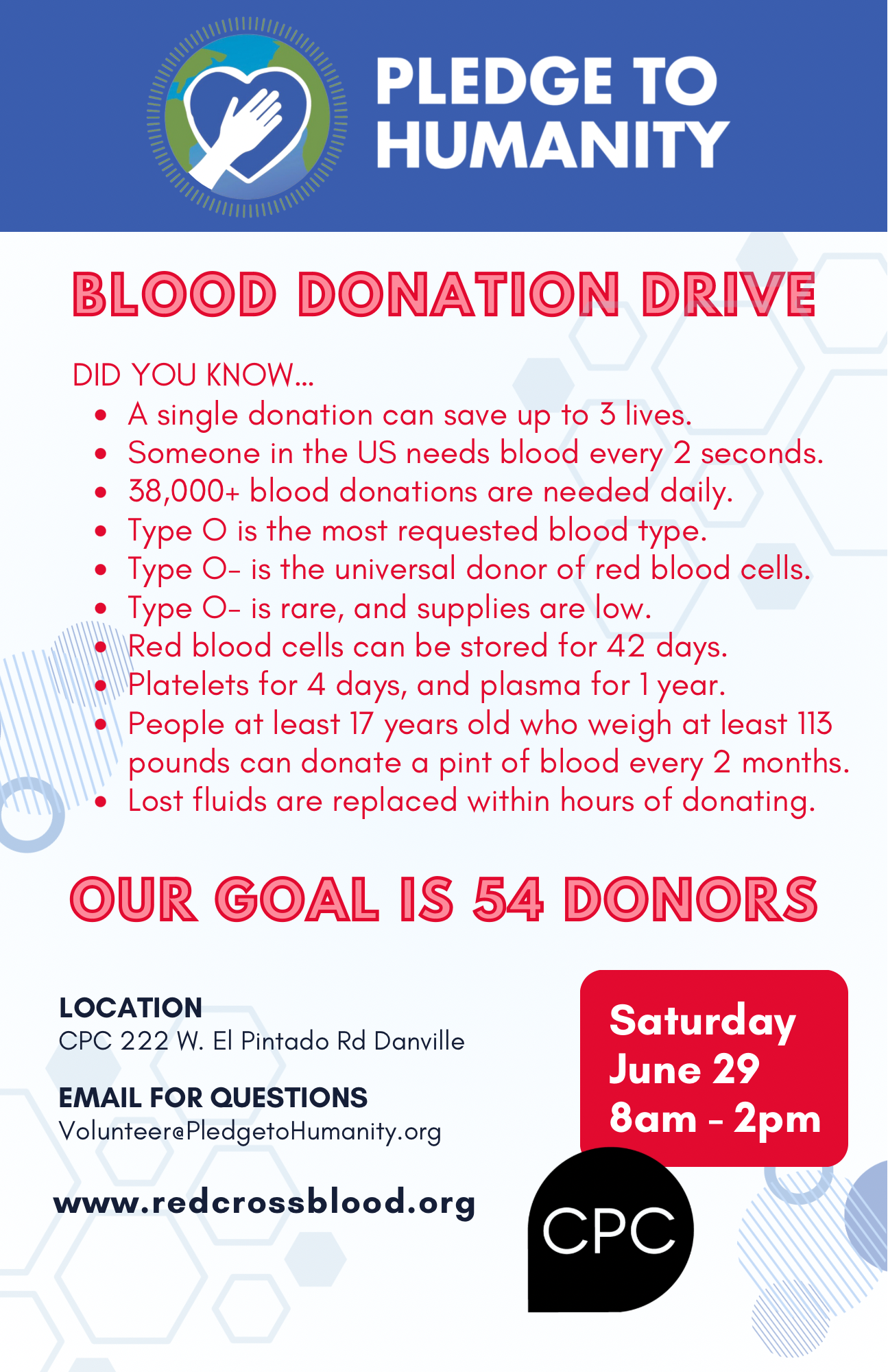 PTH and CPC Community Presbyterian Church are hosting an American Red Cross Blood Drive on Saturday, June 29th from 8am - 2pm at CPC in Danville.